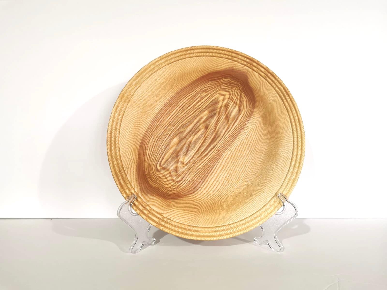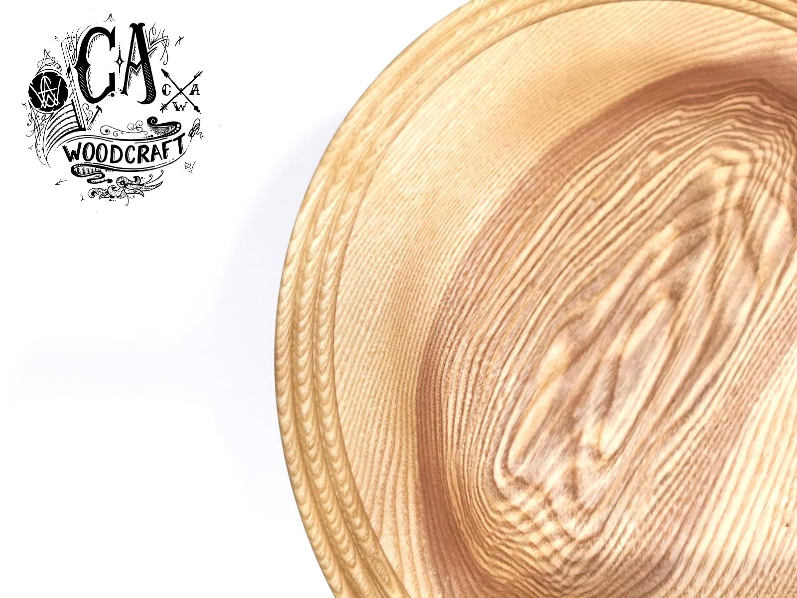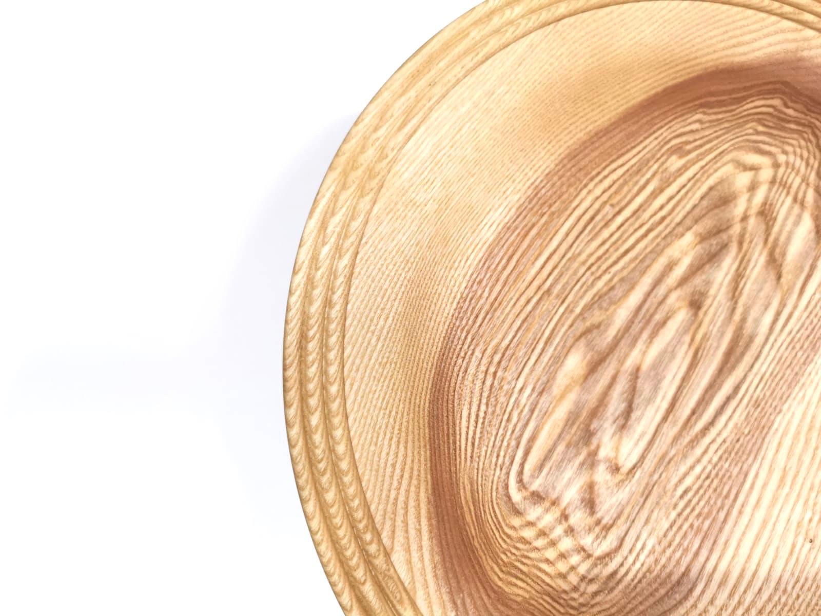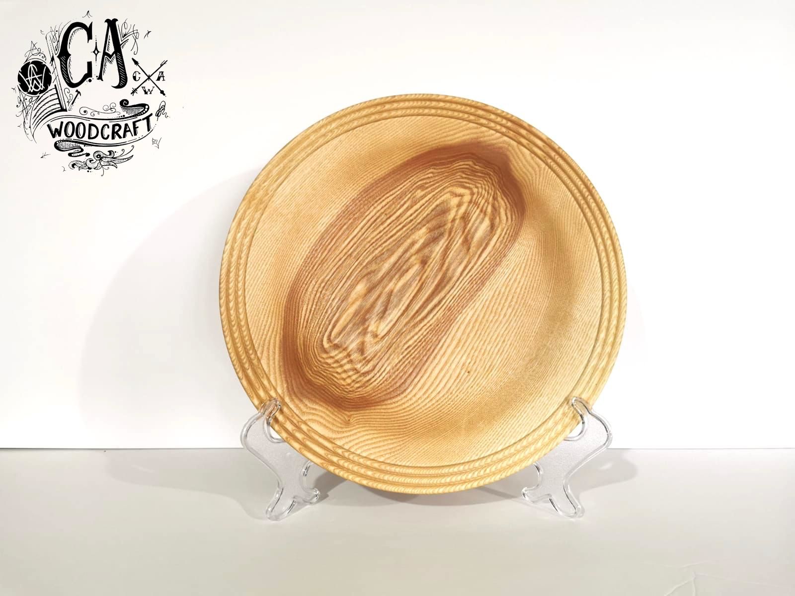 This beautifully hand crafted Platter, is 12 inches in diameter and has been carefully turned from English Ash, and sits on a modest, yet stable foot at its base.