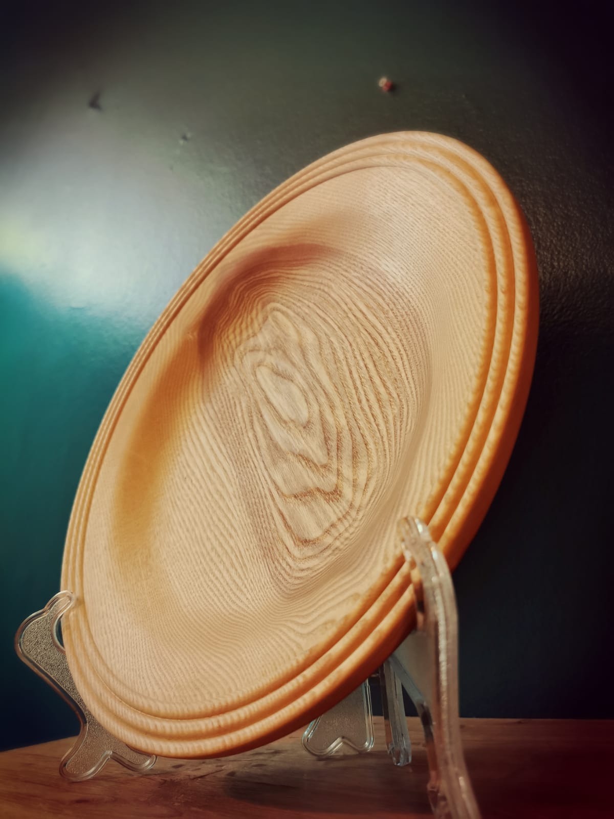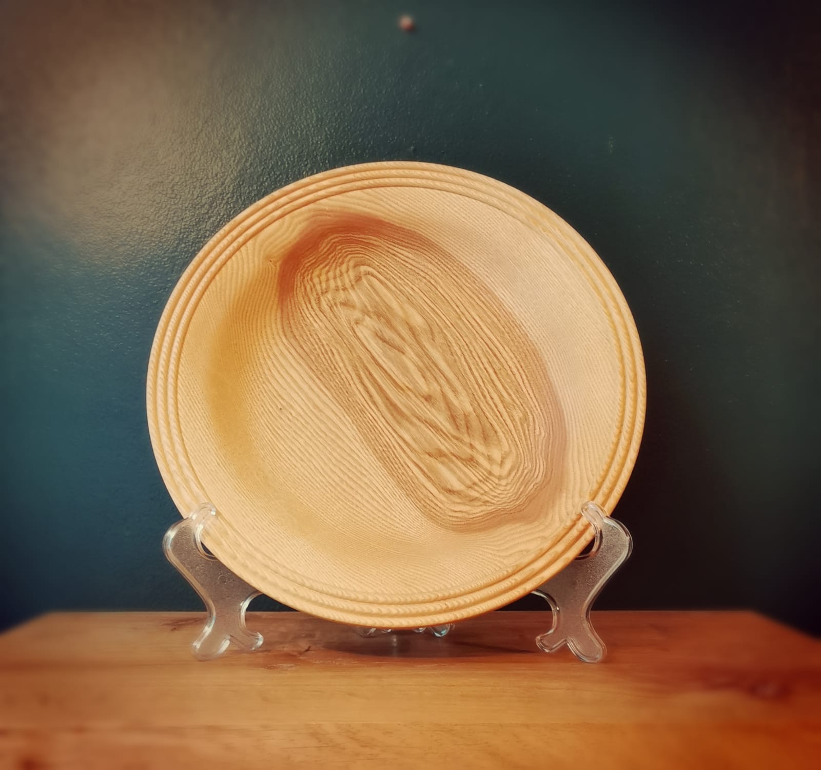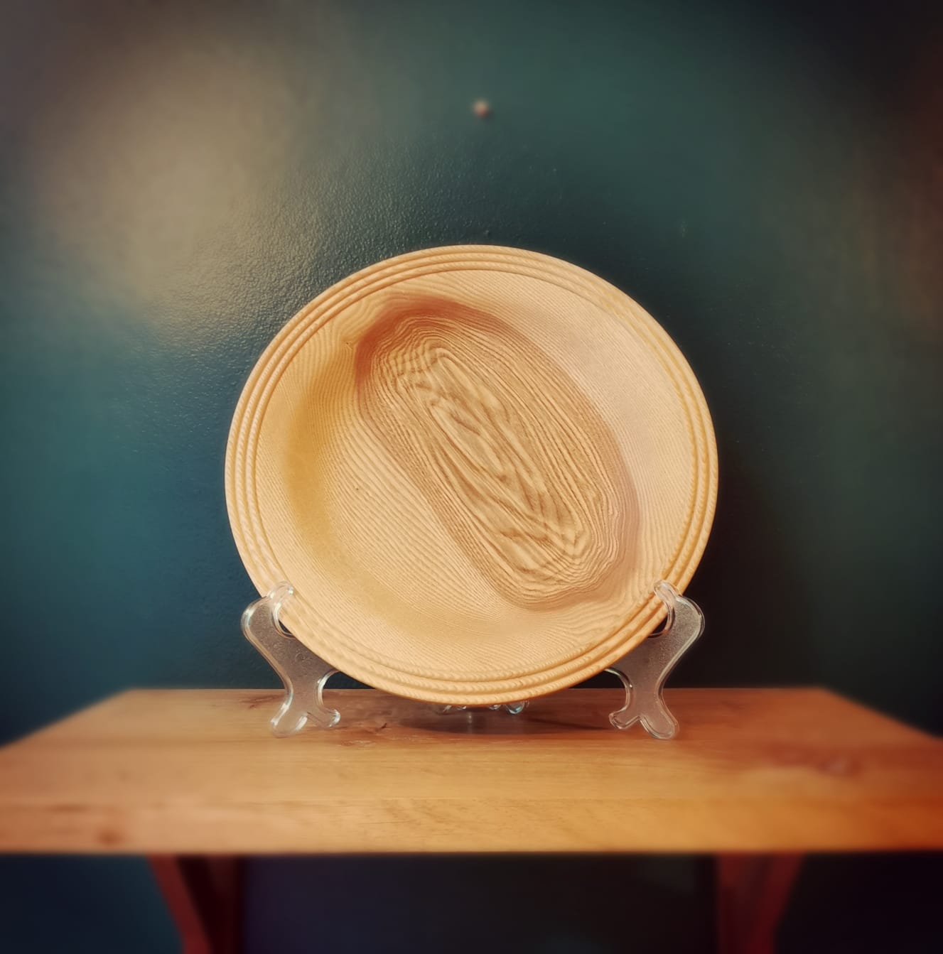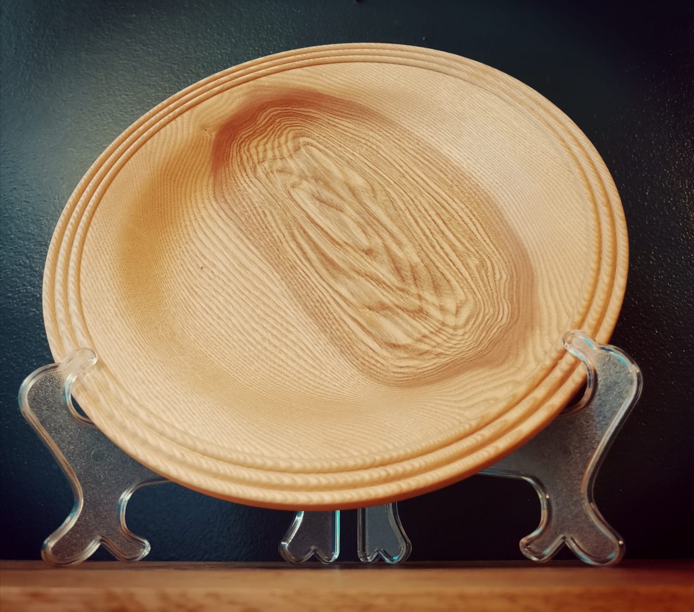 This beautifully hand crafted Platter, is 12 inches in diameter and has been carefully turned from English Ash, and sits on a modest, yet stable foot at its base.